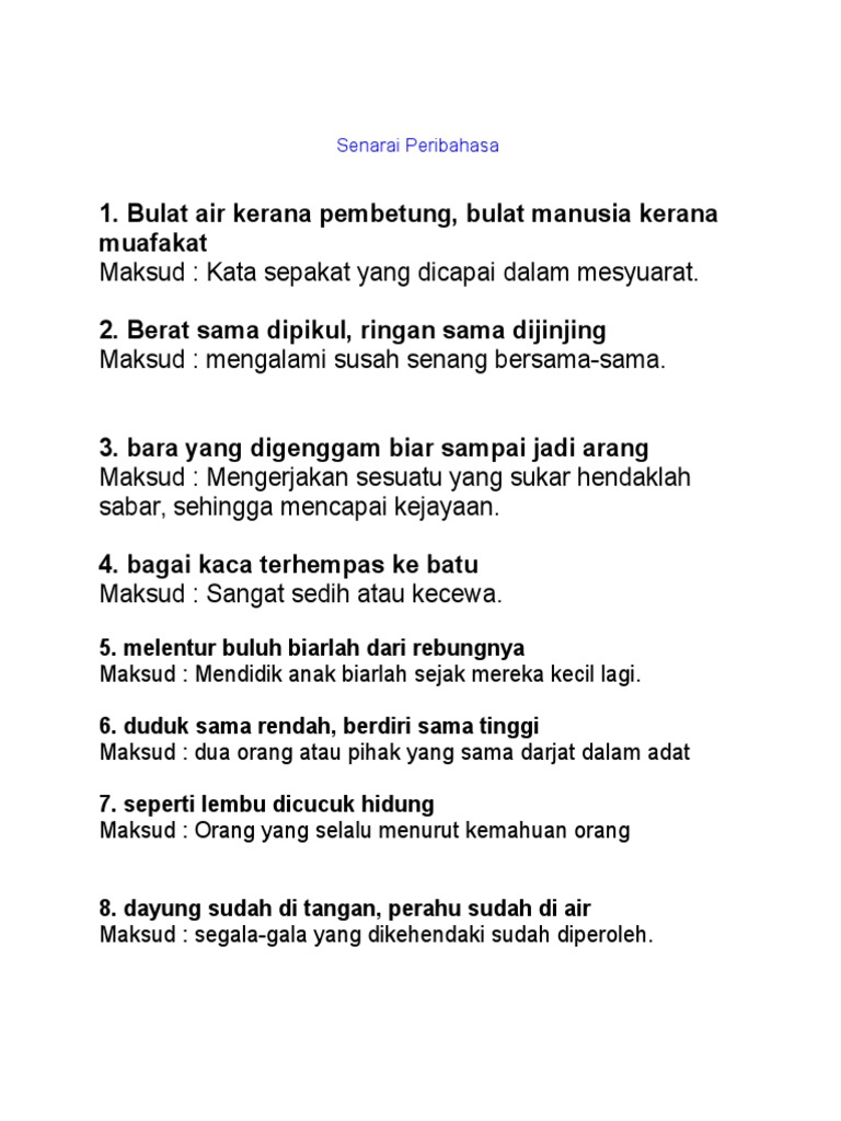Berat sama dipikul ringan sama dijinjing 6. Web Di samping itu sektor pelancongan dapat memperkenalkan dan mengembangkan industri kraf tangan di Malaysia. Web Amalan ini juga mampu memasyarakatkan rakyat Malaysia oleh sebab bulat air kerana pembetung bulat manusia kerana muafakat.