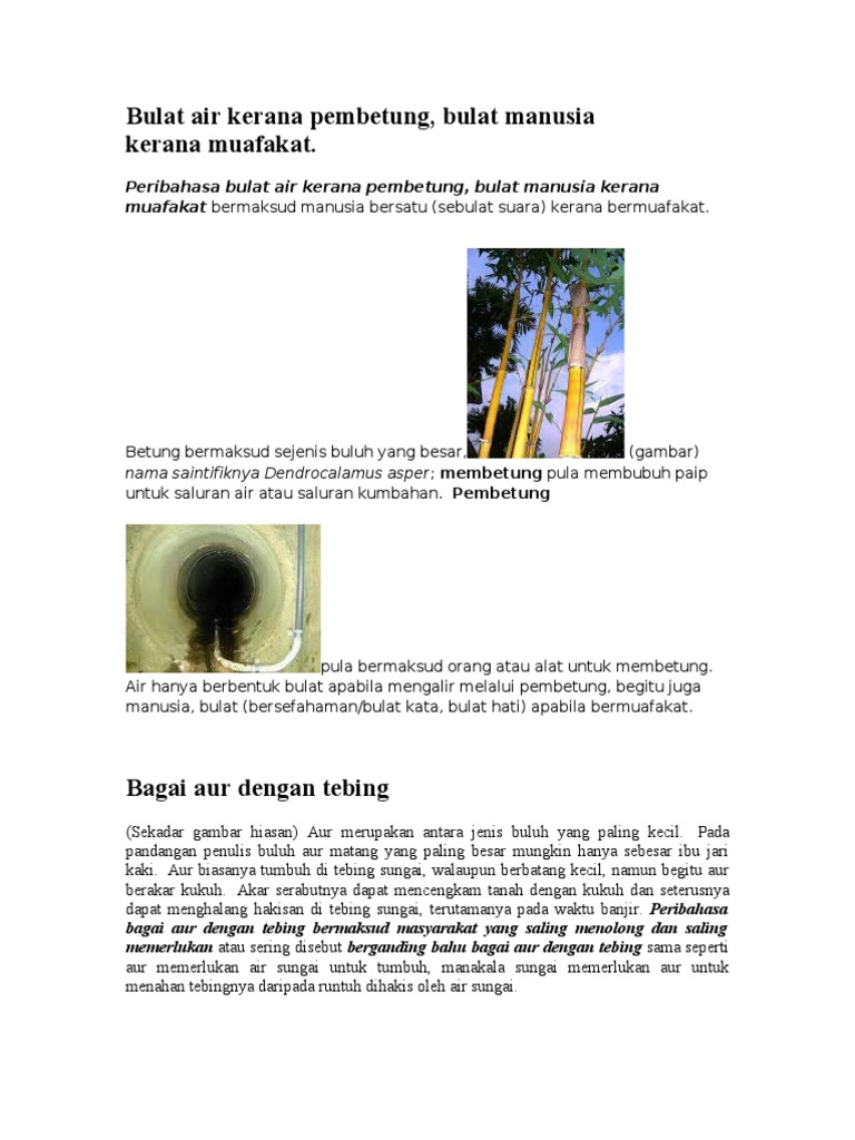 Bulat Air Kerana Pembetung Bulat Manusia Kerana Muafakat Sinonim